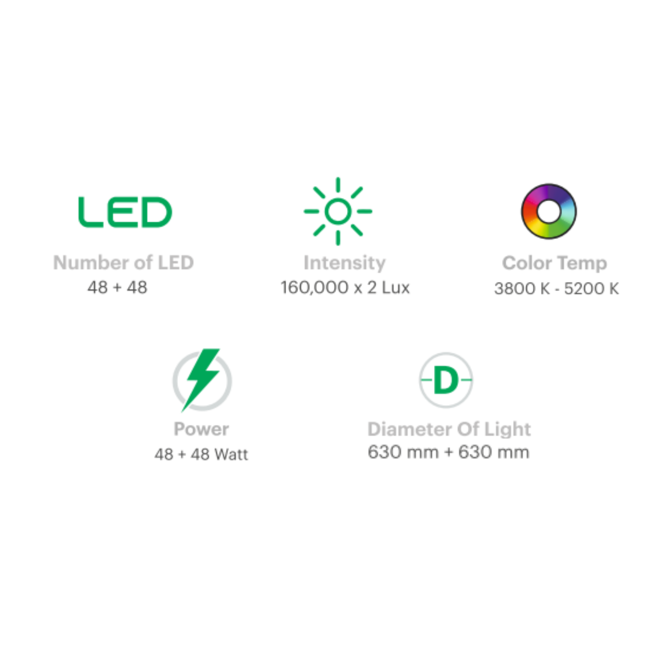 | Intensity | 160, 000 x 2 Lux |